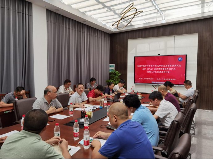 为了学习党的十九届六中全会、习近平总书记关于人才工作的重要论述等有关精神,落实学校党委关于人才团队发展部署,建设高质量学科团队,推进有组织的科研、深化合作、打造服务国家战略的科技力量和人才培养基地,2022年7月26日,买球官网在天象厅会议室召开了学习中共买球官方网站第九届委员会第九次全体(扩大)会议精神暨领军团队及创新人才队伍建设研讨会。会议由学院党委书记袁涛主持,学院领导班子成员、君武学者、学术骨干参会。