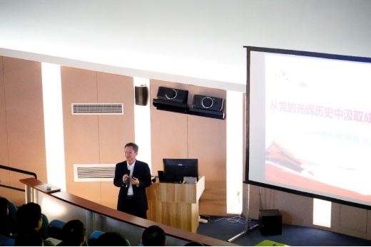 第一期主题为“研路相伴,师说党史”,由袁涛书记作为主讲人,袁涛书记围绕“学史明何理”、“学史增何信”、“学史崇何德”、“学史力何行”四个方面为同学讲解了党史学习的重要性。书记强调要从党的光辉历史中汲取成功的经验,将个人与民族和国家结合,在党的领导下,努力实现中华民族伟大复兴的中国梦。