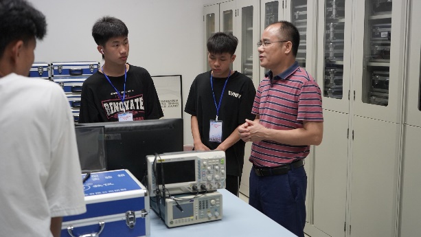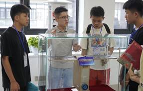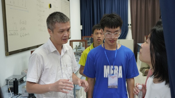 7月11日,那坡中学研学团的同学们先后参观了买球官网的洁净实验室、光学实验室等,面对从未见过的实验仪器,他们秉承求知之心,向实验室负责老师提出了自己的疑问,而老师们也都耐心地向他们讲解实验原理与仪器使用方法。