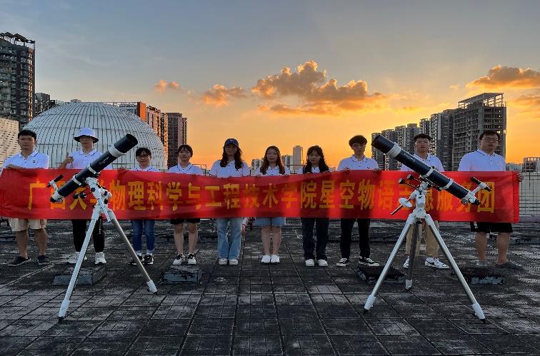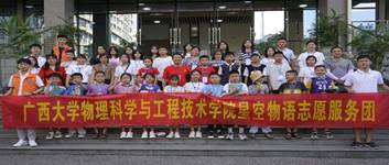 为了深入学习习近平总书记系列重要讲话精神,以实际行动迎接党的二十大胜利召开,提高大学生社会实践能力和志愿服务意识,在社会实践的大课堂中 “受教育、长才干、作贡献”,7月11日-7月13日,买球官网星空物语志愿服务团以饱满的精神状态和认真负责的态度,依托学院天象馆开展了一系列天文科普活动。先后接待了那坡县中小学优秀学子、西大第一附属幼儿园,组织了“超级月亮”观测活动等,服务了超过1000人次,在轻松愉快的氛围中让师生们感受到科研之美、宇宙之美。
