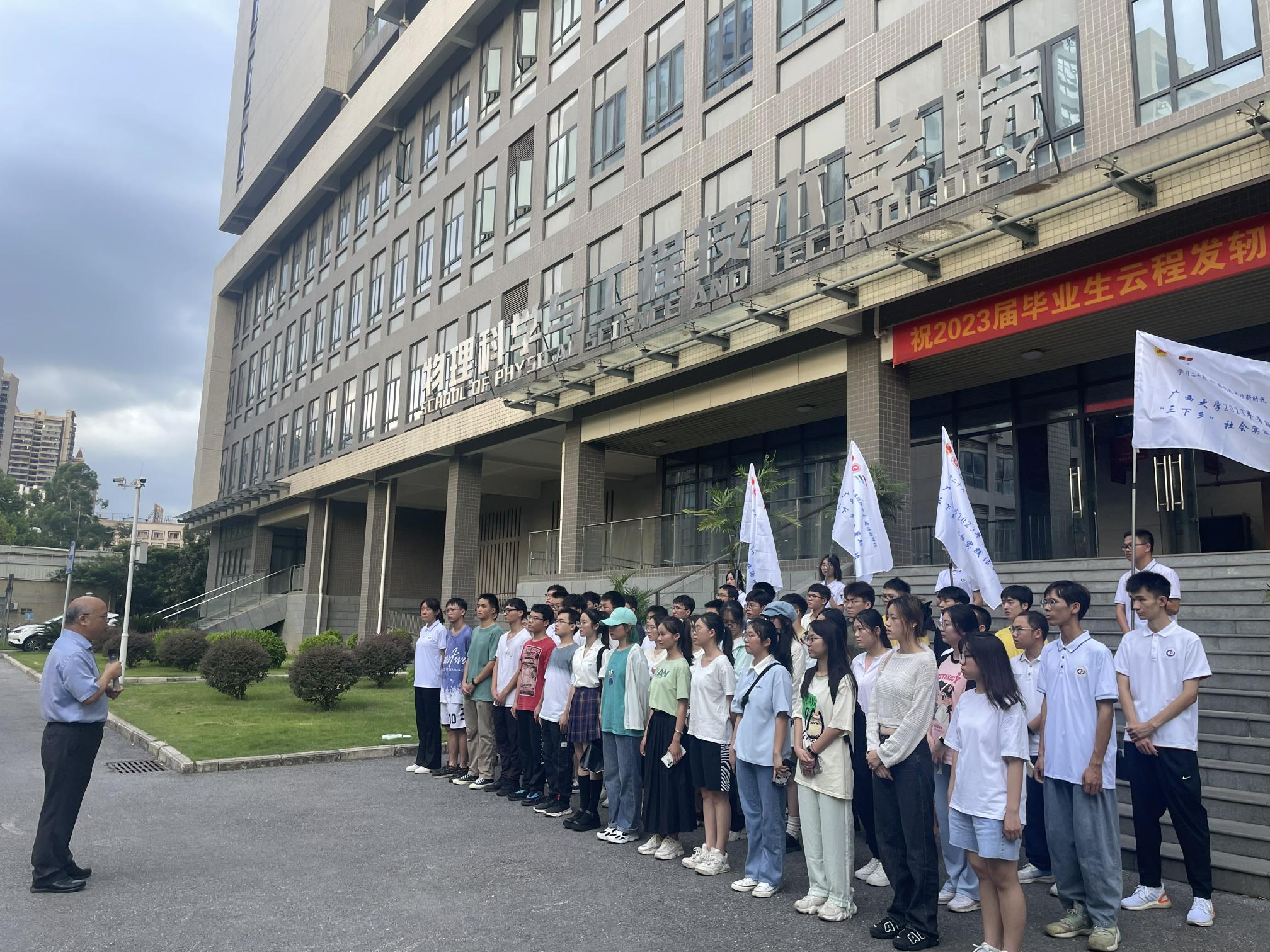 梁恩维副校长发表了出征动员讲话。他表示:一是同学们应该积极响应号召,参与实践活动,将理论知识应用于实践中,让青春在全面建设社会主义现代化国家的火热实践中绽放绚丽之花;二是实践团的规模和形式也要逐步扩大,今后要使学院一半以上的同学都能参与到科技夏令营中来;三是鼓励、号召大家做到科教结合,致力于成为德才兼备的未来科技领军人才和高素质创新创业人才。
