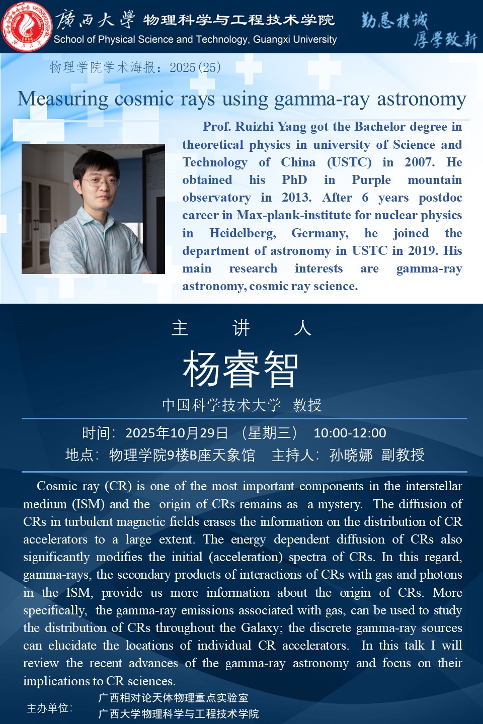 上一篇:2025年学术报告系列之26:君武大讲坛:拉索发现黑洞是PeV宇宙线加速器