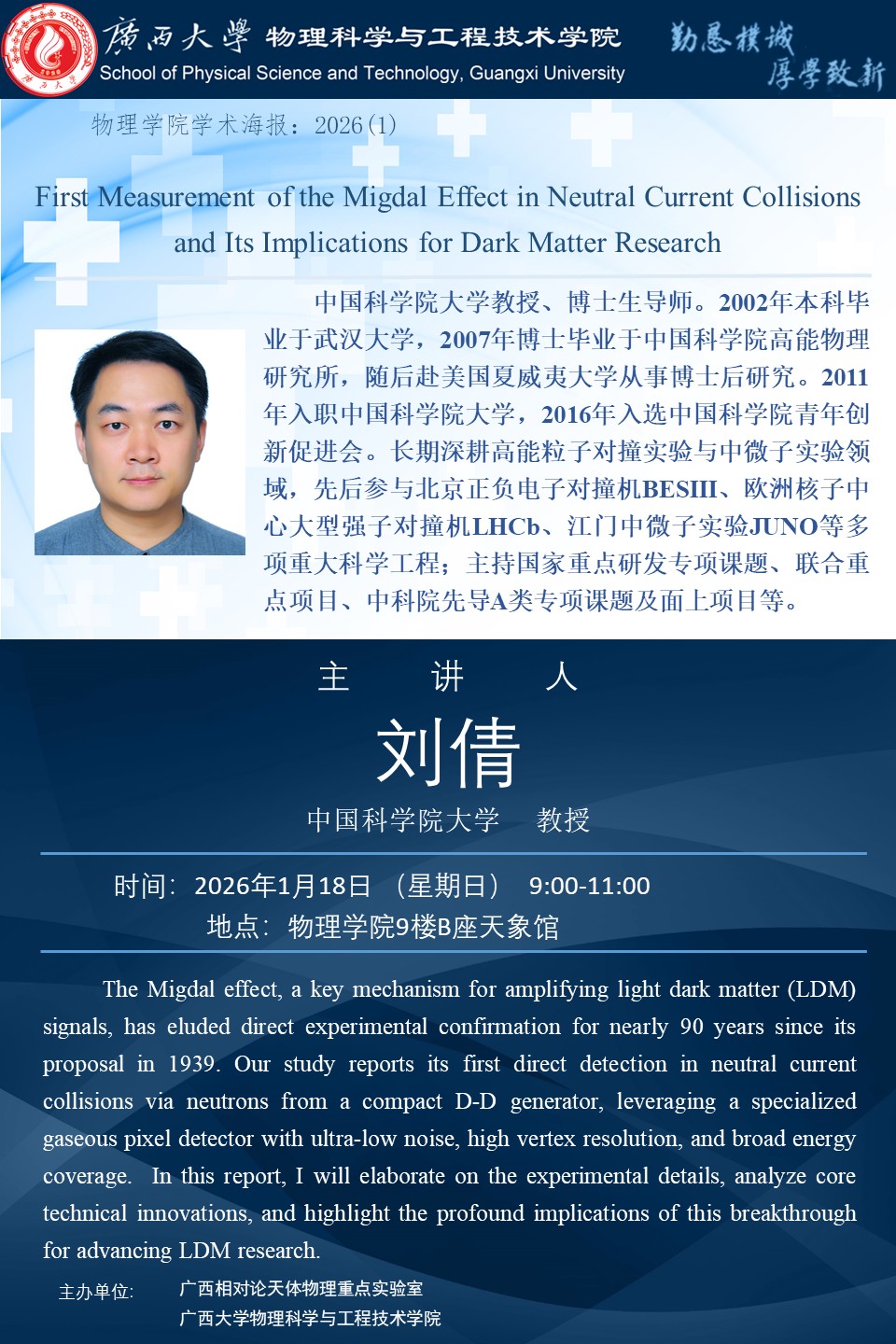 上一篇:2026年学术报告系列之2:Light from Darkness: Indirect Dark Matter Searcheswith High-Energy Astrophysics