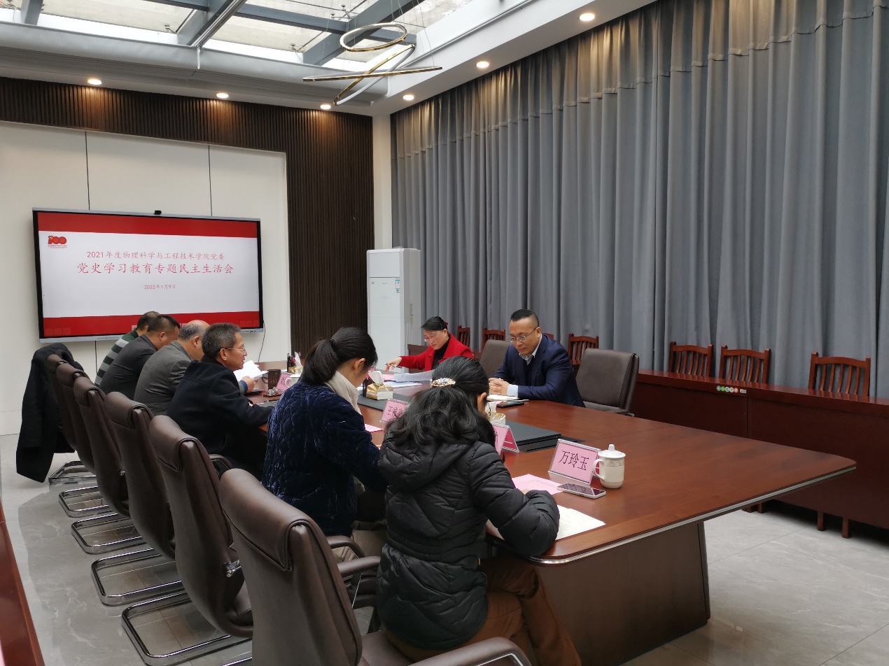 为了深入学习贯彻习近平新时代中国特色社会主义思想和党的十九届六中全会精神,深化党史学习教育,按照校党委统一部署,学院党委认真筹备、精心组织,于2022年1月9日上午召开了党史学习教育专题民主生活会。校党委副书记、副校长吴尽昭、组织部副部长骆颖到会指导工作,班子党员领导干部参加了民主生活会,院长助理、两系一中心主任、党委委员等列席会议。会议由学院党委书记袁涛主持。