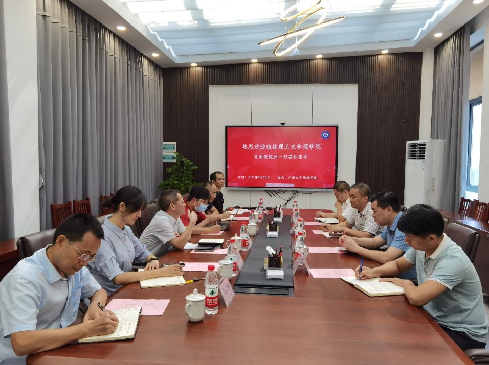 9月16日上午,桂林理工大学理学院肖剑荣院长一行到买球官网考察调研。学院党委书记袁涛出席座谈会并致欢迎辞,学院常务副院长王祥高主持座谈会。