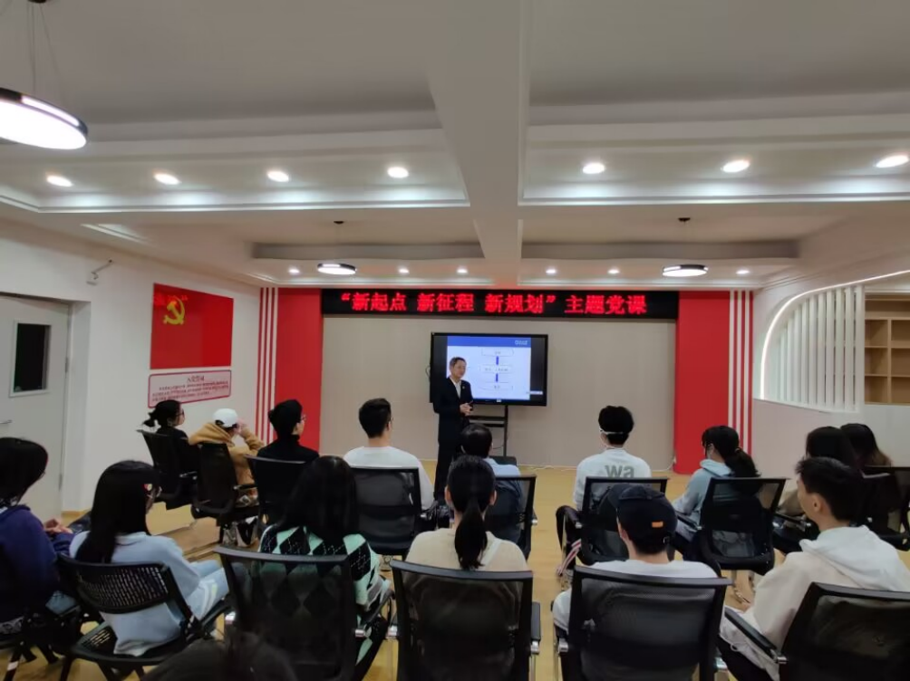 3月3日晚,买球官网在东校园学生宿舍党员活动室为毕业生党员召开“开学第一课”主题教育班会。党委书记袁涛以“新起点、新起航、新规划”为主题,为与会学生上党课。学院团委书记梁宇彬主持班会。
