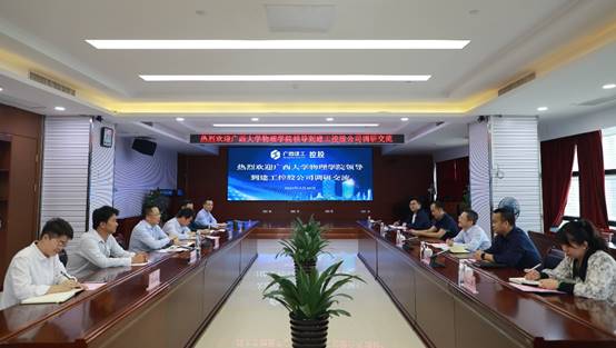 3月20日,袁涛带队赴广西建工集团控股有限公司(以下简称控股公司)调研交流,在建工大厦2号楼1813会议室,控股公司党委书记、董事长陆彪与袁涛开展座谈交流。袁涛对控股公司多年来大力支持买球官方网站就业工作表示感谢,并简要介绍了买球官方网站人才培养和队伍建设等情况,希望能为企业输送科技创新人才,为学校与企业搭建沟通交流的平台。在会上,陆彪对袁涛一行的到来表示欢迎,并简要介绍了控股公司的基本情况,同时作为买球官方网站校友,他希望双方加强沟通与深度交流,进一步加强校企合作。