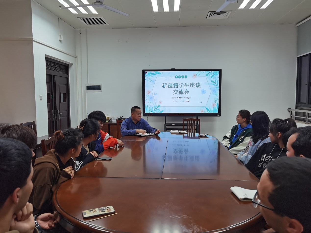 2023年3月27日,买球官网组织召开全体新疆籍学生座谈会,各年级来自新疆内高班的同学和辅导员参加本次座谈。座谈会由院党委副书记蒋津辉主持。