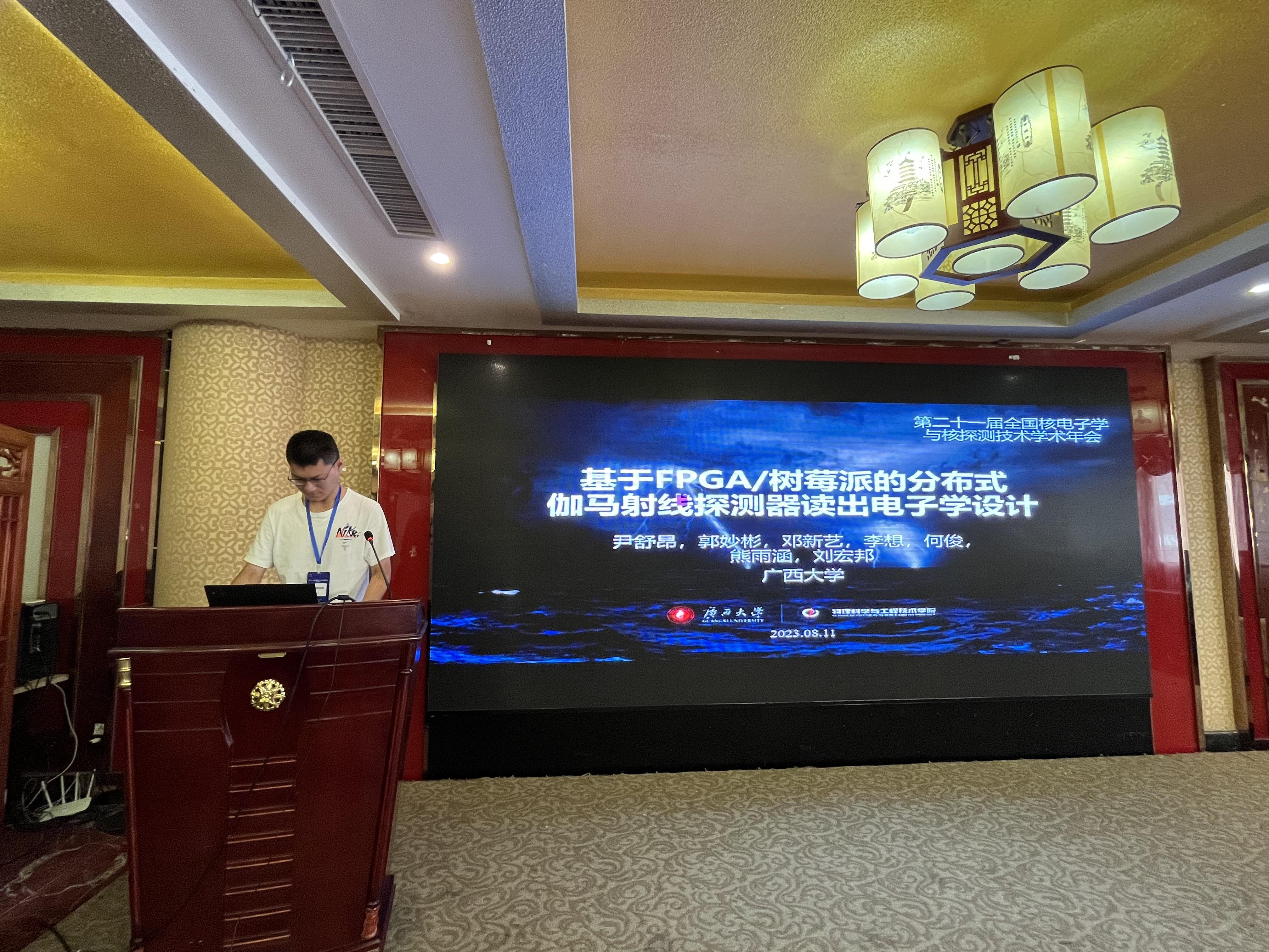 2023年8月9日至11日,第二十一届全国核电子学与核探测技术学术年会在湖北恩施召开。来自全国各地的近400名专家学者、科技工作者及研究生参加了会议,并对核电子学、核探测技术的相关研究领域进行了深入研讨和交流。由买球官网2020级本科生李想、尹舒昂参加会议并就所开展的大学生创新训练计划项目《地面伽马射线探测器阵列研究项目》研究进展作分会口头报告,指导老师为学院刘宏邦教授。