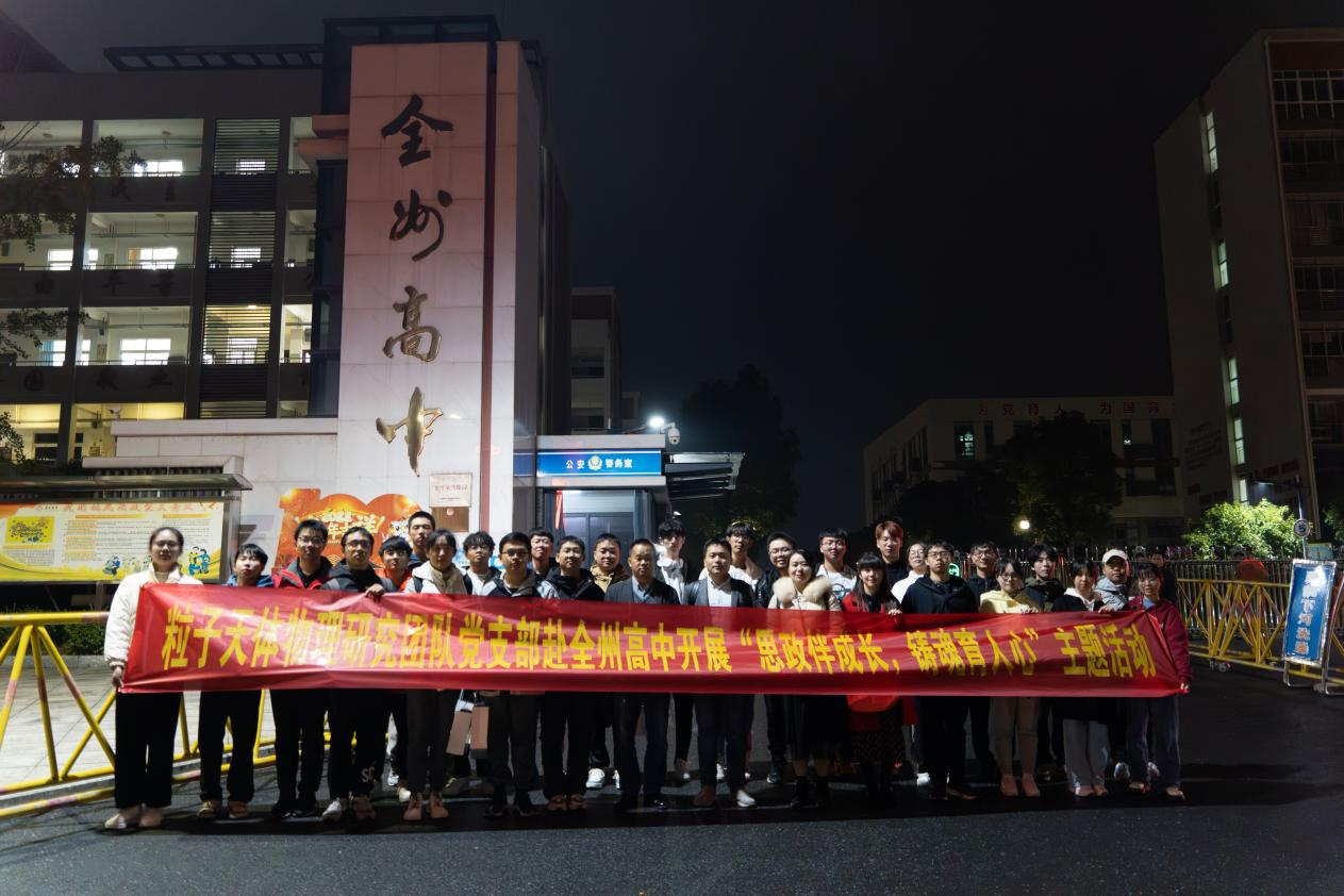 为发挥党支部的模范引领作用,加强对青少年的思想政治教育,12月3日,粒子天体物理研究团队党支部成员赴全州高中开展了一场题为“思政伴成长,铸魂育人心”主题活动。买球官方网站党委副书记蒋津辉,副院长、粒子天体物理研究团队党支部书记刘宏邦及部分学生党员参加了活动。