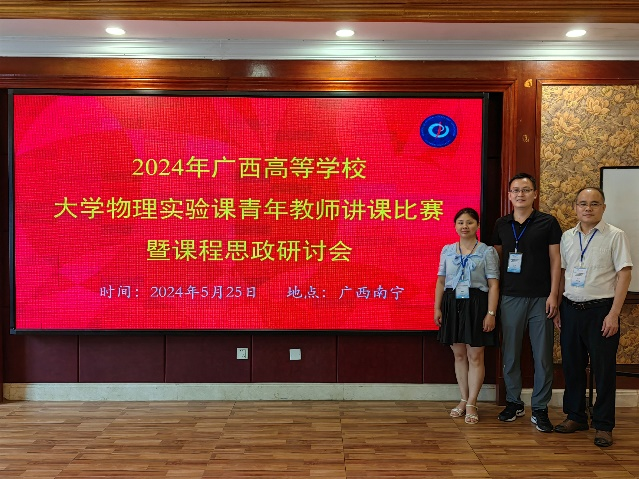 5月24日-27日,由广西物理学会、广西本科高校物理学类教学指导委员会主办,我校承办的2024年广西高等学校物理实验课青年教师讲课比赛暨课程思政研讨会在南宁市举行。买球官网物理实验中心选派的黎丽君、徐守磊两位老师,与来自全区10余所高校的青年教师同台竞技。经大学物理教学指导委员会专家的两轮严格评选,徐守磊老师获广西区一等奖,并获推荐参加2024年全国高等学校物理基础课程青年教师讲课比赛中南地区比赛,黎丽君老师获得二等奖。