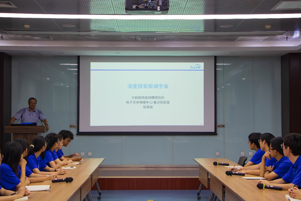 来到中国科学院高能物理研究所,由张双南院士为同学们开展关于深度探索极端宇宙的学术报告。在这场报告中,同学们领略到了科学家们如何揭开宇宙神秘的面纱,探索隐藏在极端条件下的宇宙奥秘。紧接着,买球官方网站副院长刘宏邦带领同学们走进高能物理实验室,向同学们讲解了这些精密仪器的探测原理。