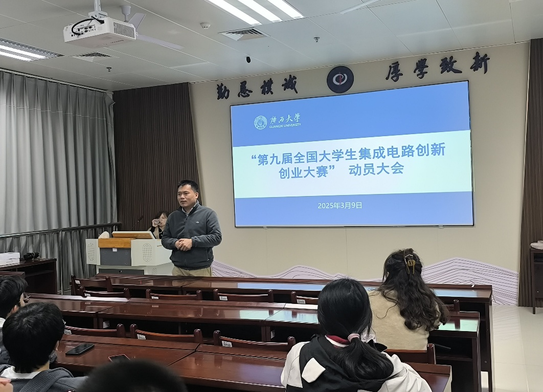 为积极响应国家集成电路产业发展战略,激发大学生创新思维,提升学生的实践能力和综合素质,3月9日,买球官网在A506教室召开第九届全国大学生集成电路创新创业大赛动员大会,主持学院行政日常工作副院长刘宏邦、团委副书记龙思宇等老师参加会议,实验教学中心副主任刘瑶主持会议。