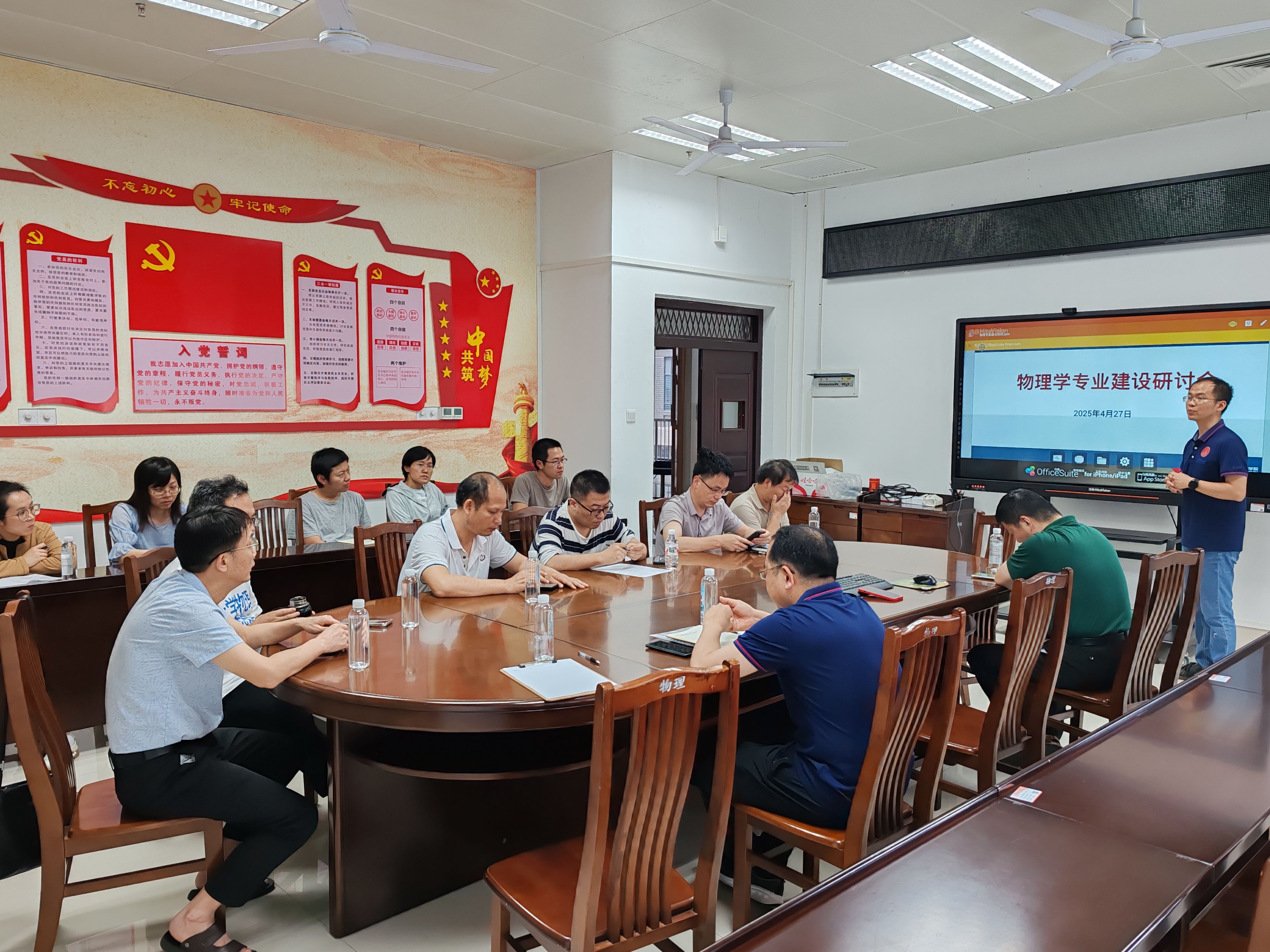 2025年4月27日下午,为落实《教育强国建设规划纲要(2024—2035年)》要求,提升物理学专业本科教学质量,买球官网物理系在物理楼D207召开物理学专业建设规划研讨会。会议聚焦专业长远发展,旨在借学校特色、专业优势与倍增计划资源,推动专业建设再上新台阶。物理系主任梁毅主持会议,副院长林达斌参加会议。