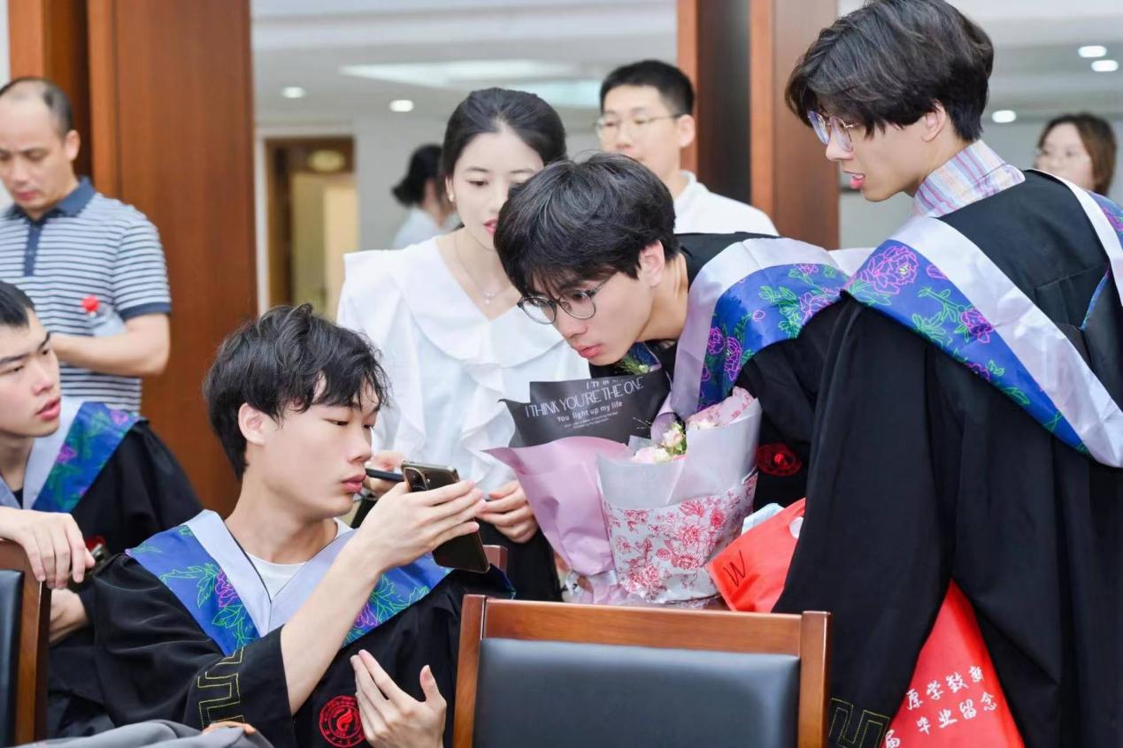 凤凰燃焰,荷影摇红。6月25日,买球官方网站2025届学生毕业典礼暨学位授予仪式在君武馆玉林厅举行。院党委书记蒋津辉,副院长(主持行政日常工作)刘宏邦,副院长万玲玉、林达斌、黄创高,毕业生导师,毕业班班主任、家长代表以及全体2025届毕业生一同参加仪式,院党委副书记孙晓黎主持仪式。
