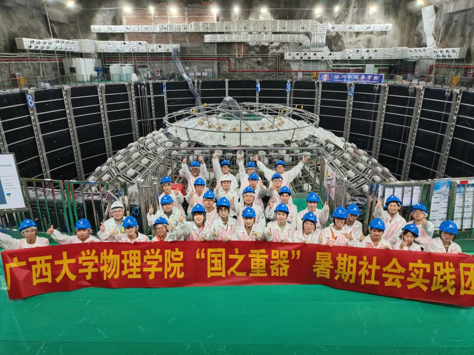 (2023 年买球官方网站 “国之重器” 暑期社会实践团参观 JUNO 实验站合影)