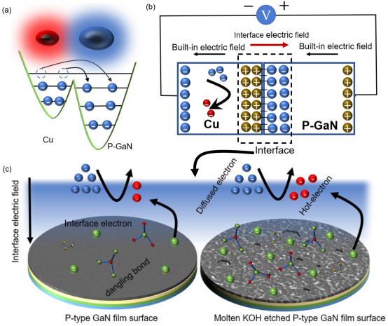 传统的表面工程作为强化摩擦电纳米发电机(TENG)性能的一种手段,是复杂和昂贵的。传统聚合物材料的成品率低、稳定性差,导致传统技术材料的高成本和实际应用困难。此外,值得注意的是随着电子器件的小型化和集成化,发电机需要在并联电路中提供更高的电流。在本研究中,我们报告了接触面积在厘米尺度(1.5 × 1.5 mm2)时Cu / P型GaN摩擦纳米发电机的性能。考虑到氮化镓晶片表面的高机械强度和结构特性,我们提出使用熔融的KOH蚀刻Ga极性GaN表面,在不破坏表面结构的情况下形成更多的界面电子和悬浮键。实验结果表明,发电机的性能得到了显著提高(短路电流从9 μA增加到80 μA,开路电压从8 V增加到29 V)。得到的最大负载电功率密度为0.28 W/m2。同时,与其它肖特基接触的摩擦纳米发电机相比(在厘米尺度),本研究中获得的Cu / P型GaN纳米发电机具有优异的短路电流密度 ~ 36 μA/cm2。因此,我们为未来一代的TENG设备的表面工程技术提供了新的见解。