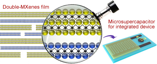 未来智能消费电子产品将是向便携式和可穿戴设备转变。实现这一目标的关键是开发高容量、长寿命的高性能储能设备。微型超级电容器因其有高倍率性能、长循环寿命和优异的功率密度被认为是未来便携式电子产品的理想储能器件。制备柔性储能器件的关键是柔性电极材料的开发。在以往报道的许多工作中,活性物质大多为附着在柔性基板表面制备柔性电极。然而,使用柔性衬底通常会降低整个器件的质量比电容和体积比电容。近年来,具有高导电性和亲水性的二维碳化物/氮化物(MXenes)可以在没有衬底的情况下组装成自支撑薄膜,且表现出优异的电容性能,已广泛研究应用于超级电容器电极材料。然而,基于大面积MXenes基薄膜的微型超级电容器的大规模制造仍然是一个挑战。此外,MXenes纳米片在制作成薄膜材料时纳米片通常会出现团聚现象,导致电化学性能下降。