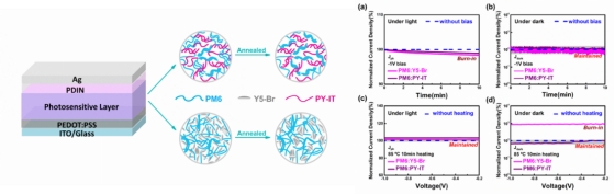 针对以上问题,买球官网薄膜光伏团队制备了一种全聚合物光电探测器,实现了宽光谱响应和快速的响应时间,且器件在电、热应力下仍能保持高检测性能,表现出显著的稳定性。用全聚合物体系是提高有机光电探测器稳定性的有效策略,并为未来有机光电探测器的商业应用提供了有用的指导。