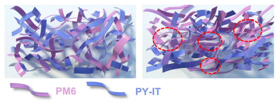 全聚合物有机太阳能电池(all-PSCs)因良好的形态稳定性、优异的机械灵活性和光稳定性等显著优点吸引了越来越多人的研究兴趣。但是,由于聚合物的长分子链会互相纠缠,光电转换效率(PCE)仍落后于基于小分子受体的聚合物有机太阳能电池。因此怎样优化全聚合物活性层的形貌来实现高效的全聚合物有机太阳能电池仍然是我们面临的首要问题。针对以上问题,买球官网薄膜光伏团队提出通过第三组分调控活性层给受体相分布从而抑制载流子复合的策略,进一步提升了all-PSCs光电转换效率。