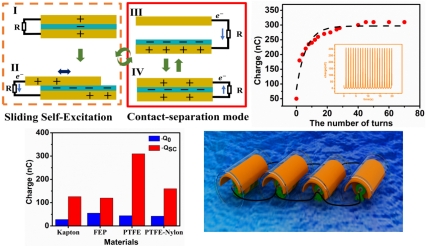 摩擦纳米发电机是收集低频水波能的一种具有发展前景的能源技术,而产生高的表面电荷密度是实现摩擦纳米发电机高输出的关键因素之一。然而,在实际工作中,产生高表面电荷密度并长时间维持是一个难题。传统的接触分离模式由于摩擦不充分难以达到高表面电荷密度,而滑动摩擦模式虽可大幅提升表面电荷密度但摩擦损耗会降低使用寿命。针对以上问题,买球官网蓝色能源团队吸两种模式之所长,设计了一种间歇式滑动摩擦激励的同步纳米发电机,实现了高表面电荷密度的长时间保持和低摩擦损耗的双重功能。这种摩擦激励模式可以显著地提高膜表面的电荷密度,且对于无序随机的海洋波动能表现出良好的收集能力,为发展海洋自驱动传感系统提供了切实可行的策略。研究成果以“Synchronous nanogenerator with intermittent sliding friction self-excitation for water wave energy harvesting ”为题在线发表于国际顶级能源类期刊《Nano Energy》上。
