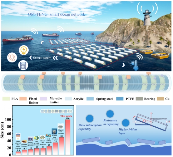 研究成果以"One Meter Triboelectric Nanogenerator for Efficient Harvesting of Meter-Scale Wave Energy"为题发表于知名Nature Index期刊《Advanced Functional Materials》(IF=18.5) 上,买球官方网站为第一通讯单位。