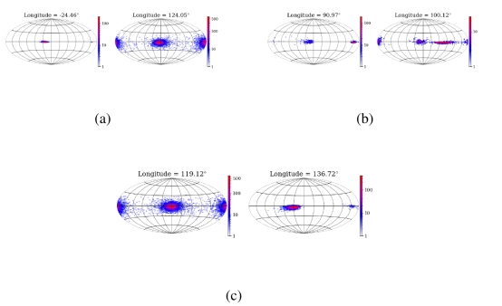 脉冲星单脉冲辐射状态以及偏振辐射方向等信号可能反映出脉冲星表面放电点分布和磁层中不同模式波的偏振辐射过程。近日,以买球官方网站、国家天文台、北京大学、和中国科学院大学组成的合作团队,对全相位辐射脉冲星B0950+08的单脉冲进行分析与研究。研究人员发现脉冲星辐射的物理过程与辐射相位的远近没有正相关。如图1所示,流量强度相当的辐射窗口有着正相关,其中颜色棒代表着相关系数。该现象首次在这颗脉冲星中发现。对单个周期的辐射状态进行研究,如下图2所示,研究人员发现有的脉冲周期有多个辐射窗口,这种潜在的物理机制是脉冲星表面可能分布不同高度的小山峰,山峰的高度决定着表面放电点放电的优先顺序。这个观测结果进一步表明这颗脉冲星表面不是光滑的,而是长有不同高度的小山峰。